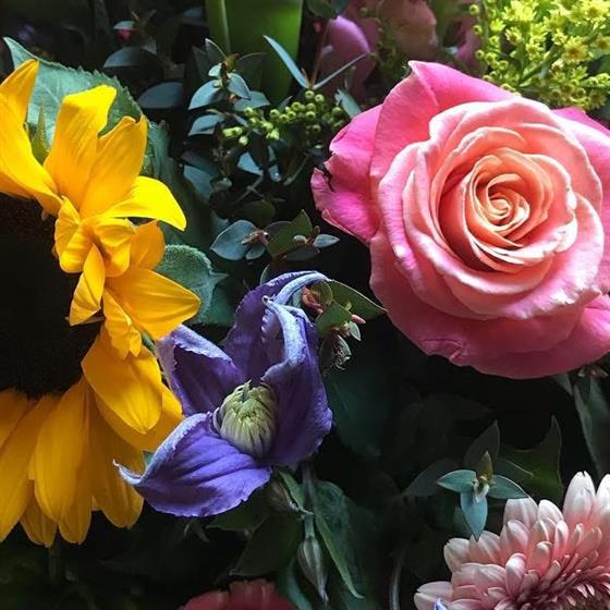 Occasionally sunflowers are unavailable so another large headed variety of flower will be substituted